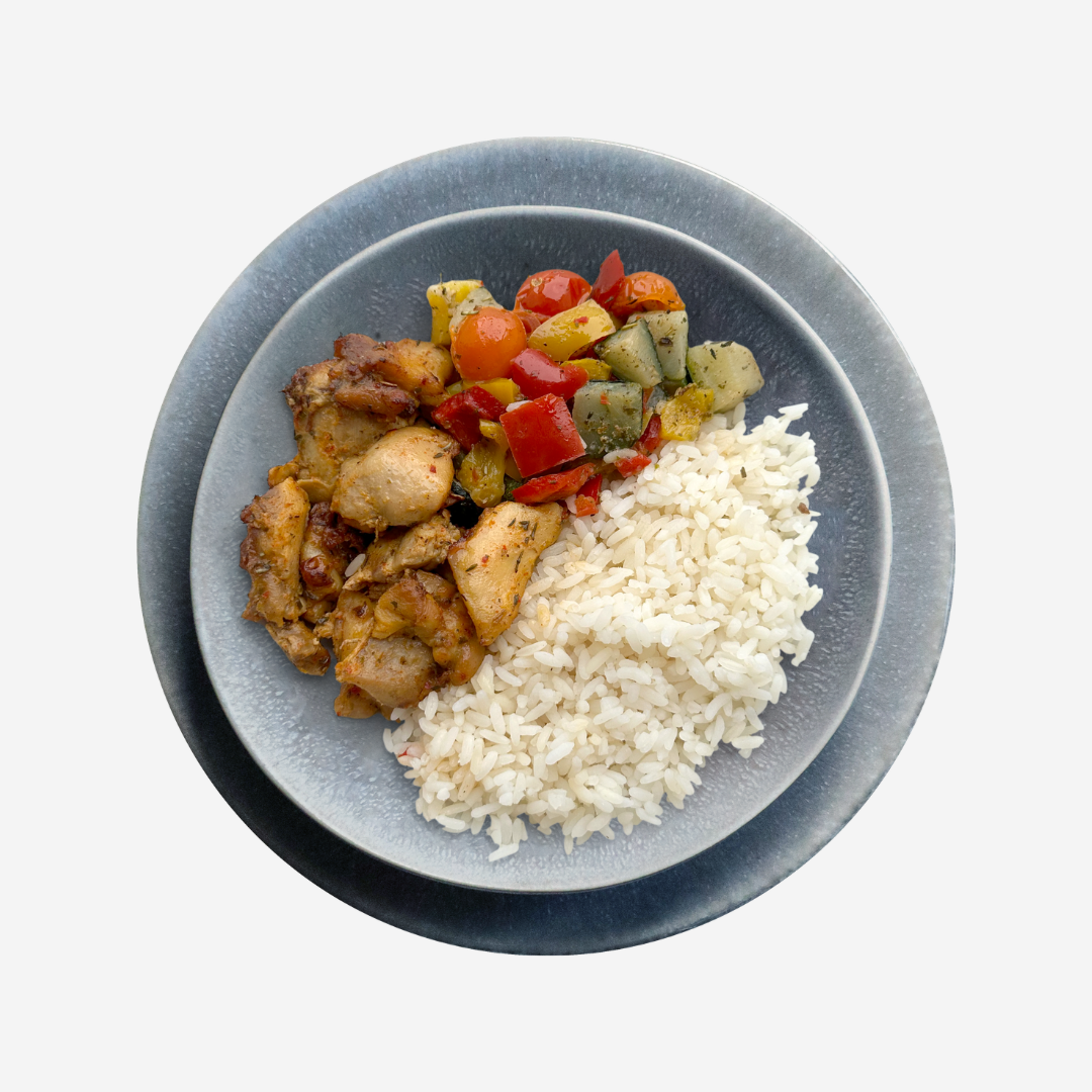 Gyrospfanne vom Huhn mit Gemüse und Reis