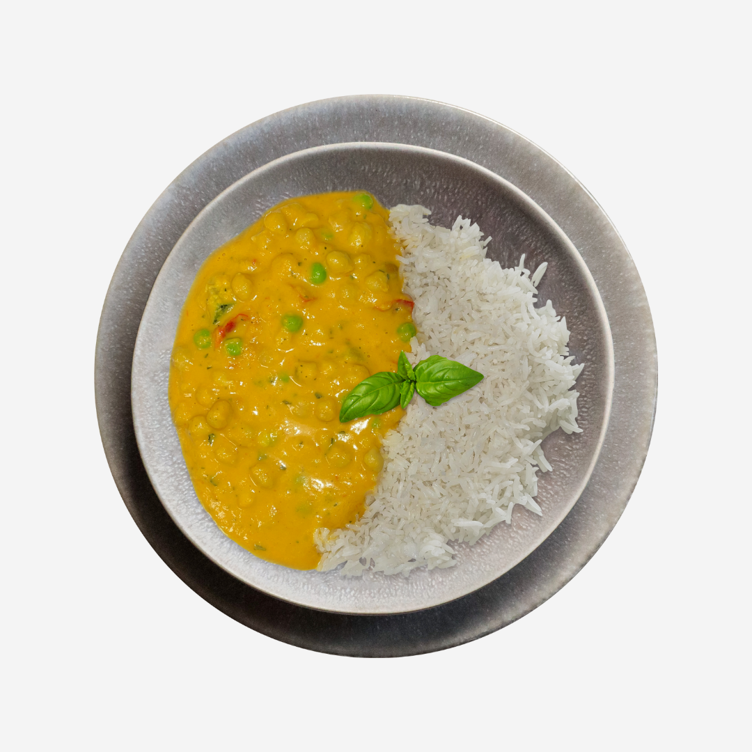 Veganes Gemüsecurry mit Cashewkernen und Reis