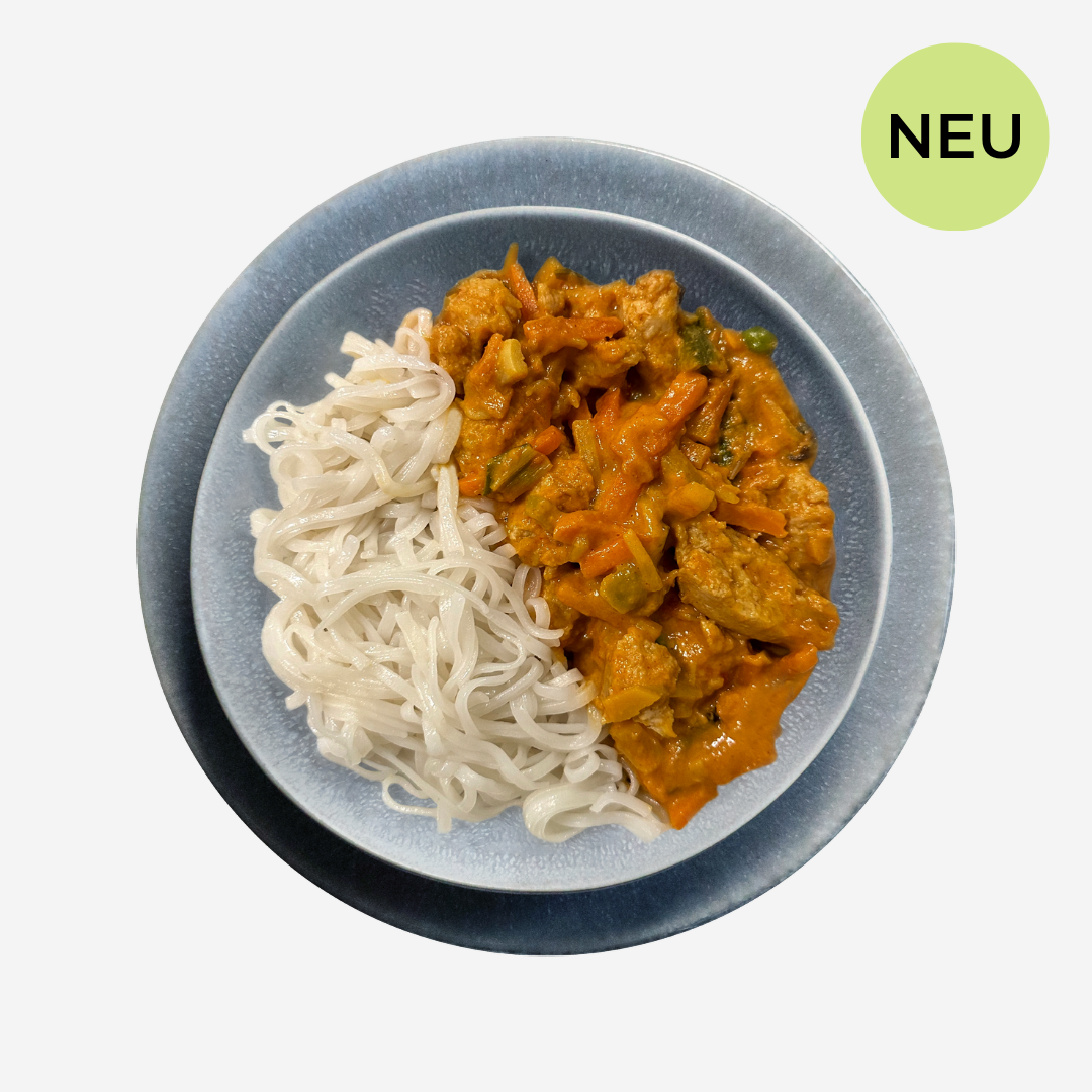 Thai Red Curry mit Sojageschnetzeltem und Reisnudeln